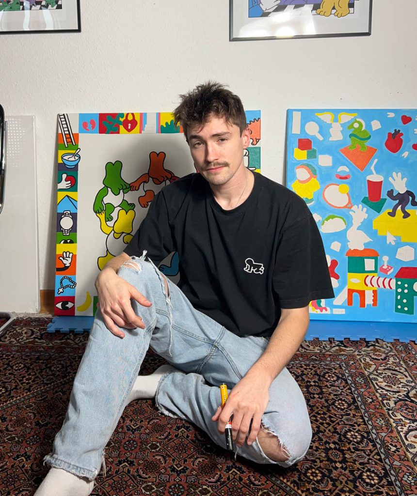 Based in Cologne, Phil Huelz works across analog and digital media, merging playful marker drawings and detailed stencil work with vibrant digital illustration. Born with a heart condition, Phil utilizes the heart as a recurring motif—a visual reminder of vulnerability, resilience, and human connection. His high-contrast compositions and expressive colors create a visual language that balances deep emotion with narrative play, bridging the gap between commercial and experimental art.